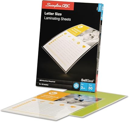 With 3 mil thickness and a high gloss finish these swingline gbc selfseal letter size single sided laminating sheets retain flexibility and protect against wear and tear while providing a sleek look and feel. 3 mil thick pouches provide solid protection with versatile flexibility. Preserve important documents and photos with these self adhesive laminating sheets.