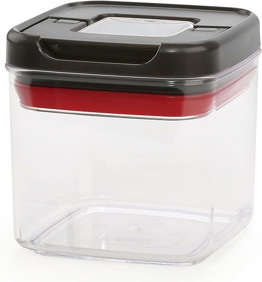 Rounding it all off its space saving stackable design ensures easy storage in your cupboards. The incorporated lever doubles as a way to elevate the lid off the counter and help prevent cross contamination. Set includes a 3 1 l tall square 2 of the 1 8 l medium and 2 of the 1 l short containers. Easy to open or close the lever lock mechanism creates an airtight seal with one simple motion.