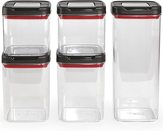 The t fal ingenio 5 piece dry storage container set ingenio containers are airtight stackable and space saving keeping your dry foods fresh and kitchen clutter free.