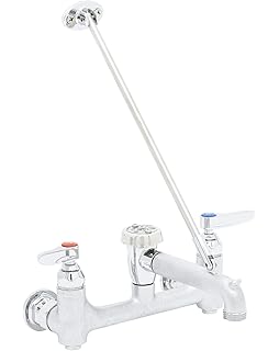 4 5 out of 5 stars 19. Free shipping on your first order shipped by amazon. Only 2 left in stock order soon. Service sink faucet wall mount 8 centers built in stops vacuum breaker rough 8 wall mount mixing faucet with rough chrome plated brass body rough chrome plated brass spout with vacuum breaker pail hook and garden hose male outlet compression cartridges with spring checks lever handles 1 2 npt female inlets built in service stops.
